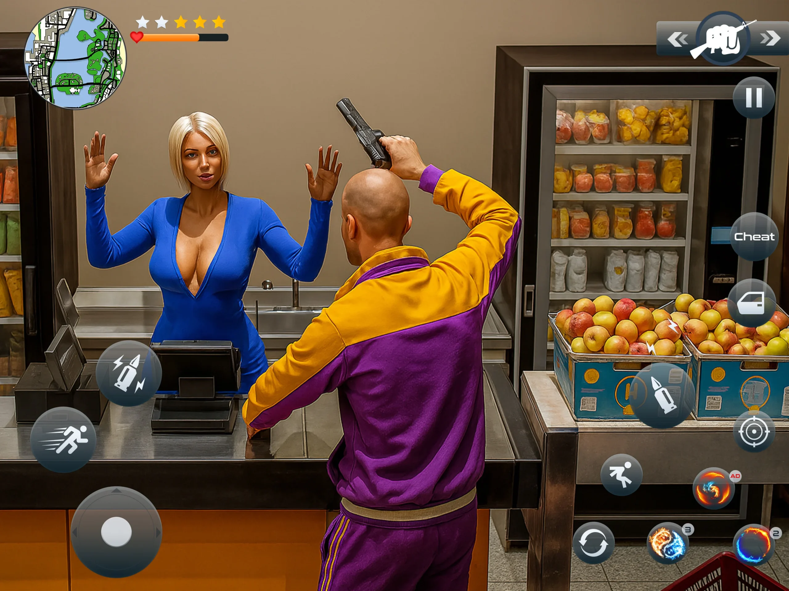 Explore a massive open city full of cars, bikes, and gang battles. Drive, fight, and build your mafia empire in the ultimate 3D crime world!