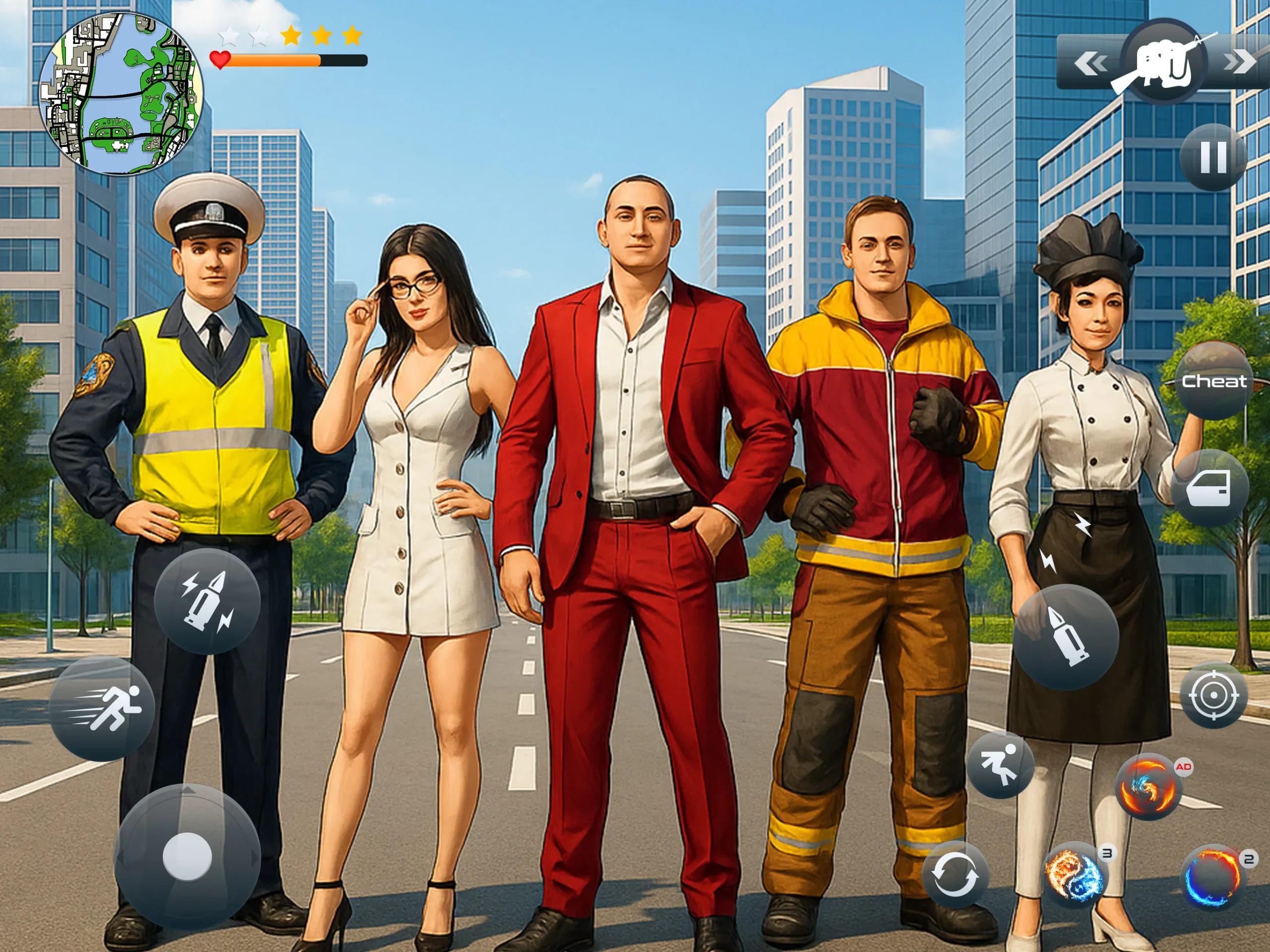 Experience a full 3D open-world crime adventure. Drive fast cars, ride superbikes, and fight mafia gangs across a huge modern city filled with life, chaos, and freedom.