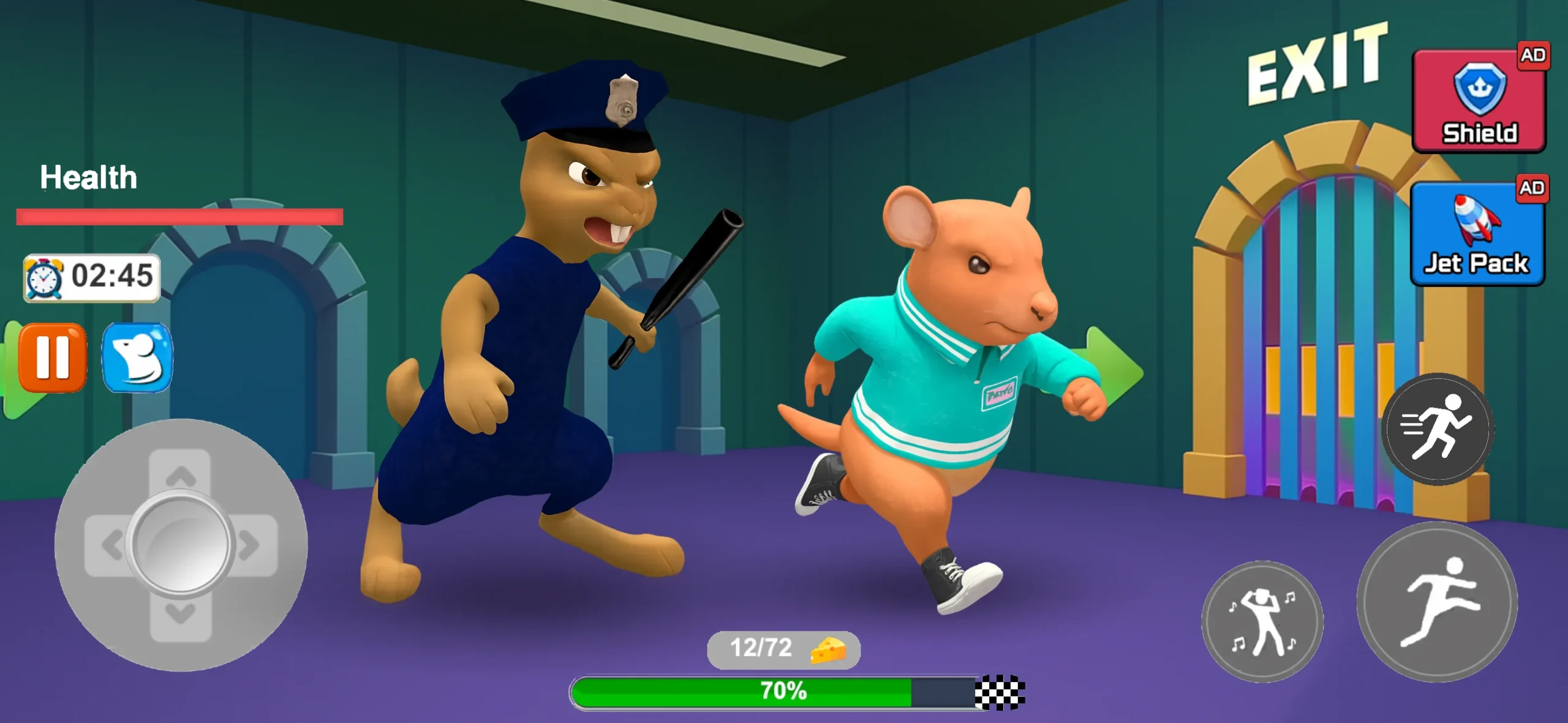 Escape the prison as a clever rat! Run, jump, and survive thrilling levels in tunnel, career, and open-world modes. Outsmart the police cat and find your freedom!